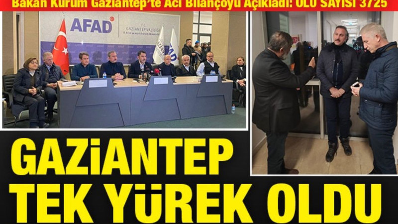 Bakan Kurum Gaziantep'te depremde ölenlerin sayısının 3725 olduğunu açıkladı. Kurum ayrıca vatandaşlara evlerine Hasarsız ve Az Hasarlı Evlere raporu çıktıktan sonra girebileceklerini söyledi.